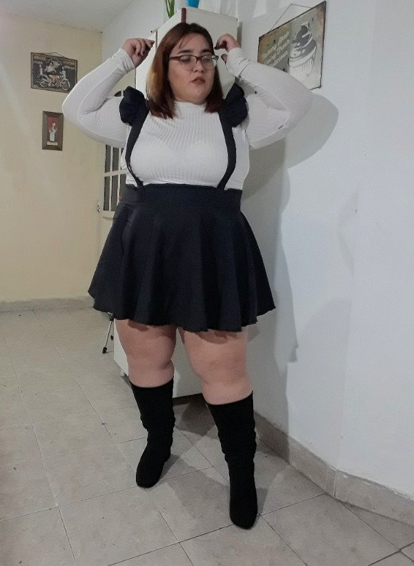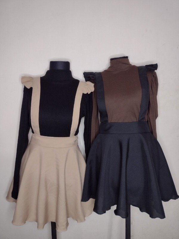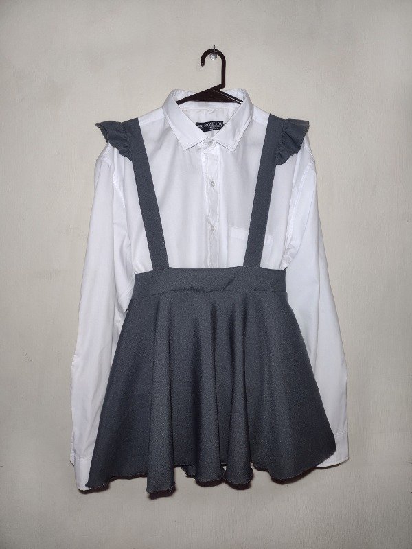 Falda plato con bordes de nube y tiradores con volados. El cinturón es elastizado atrás.