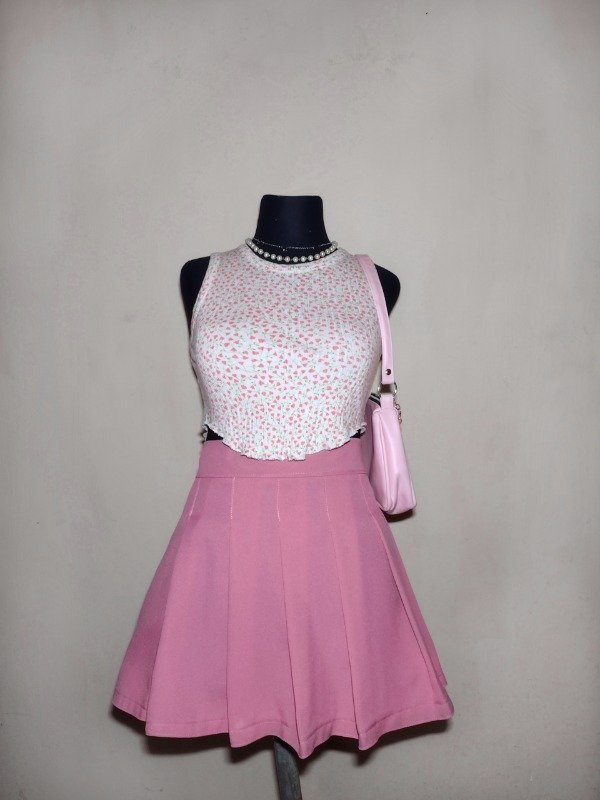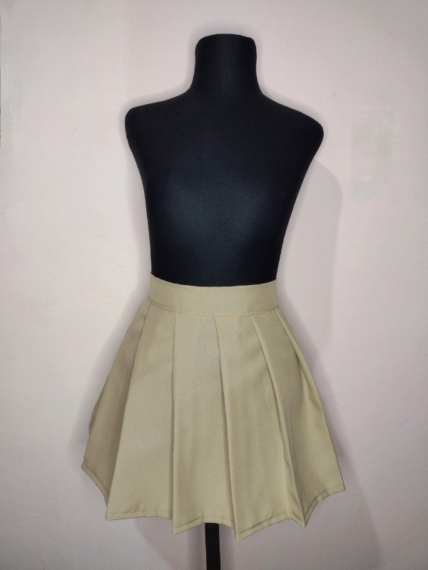 Falda de tela tropical mecánico con tablas sueltas o cosidas llevan cierre y botón.