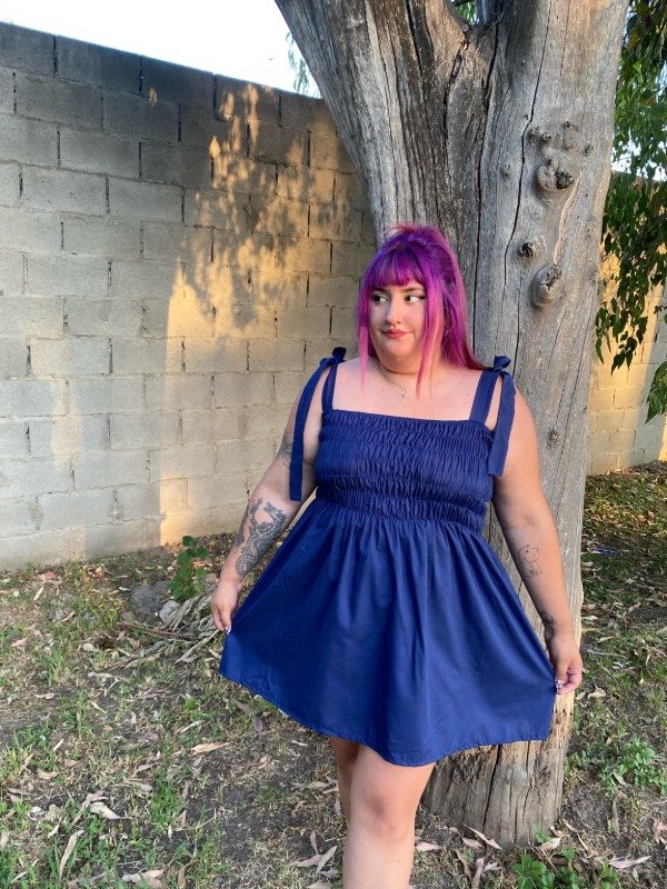 Vestido de tela batista, la parte del torso es frunce, las tiras son regulables. NO lleva cierre ni botón.