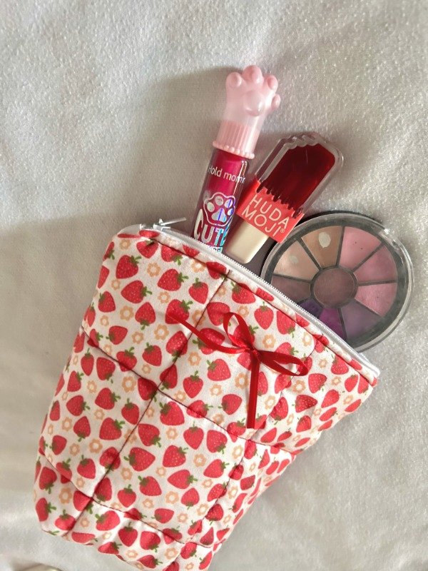 Neceser/cosmetiquera acolchonada, rellena de guata, con forro interior y cierre.